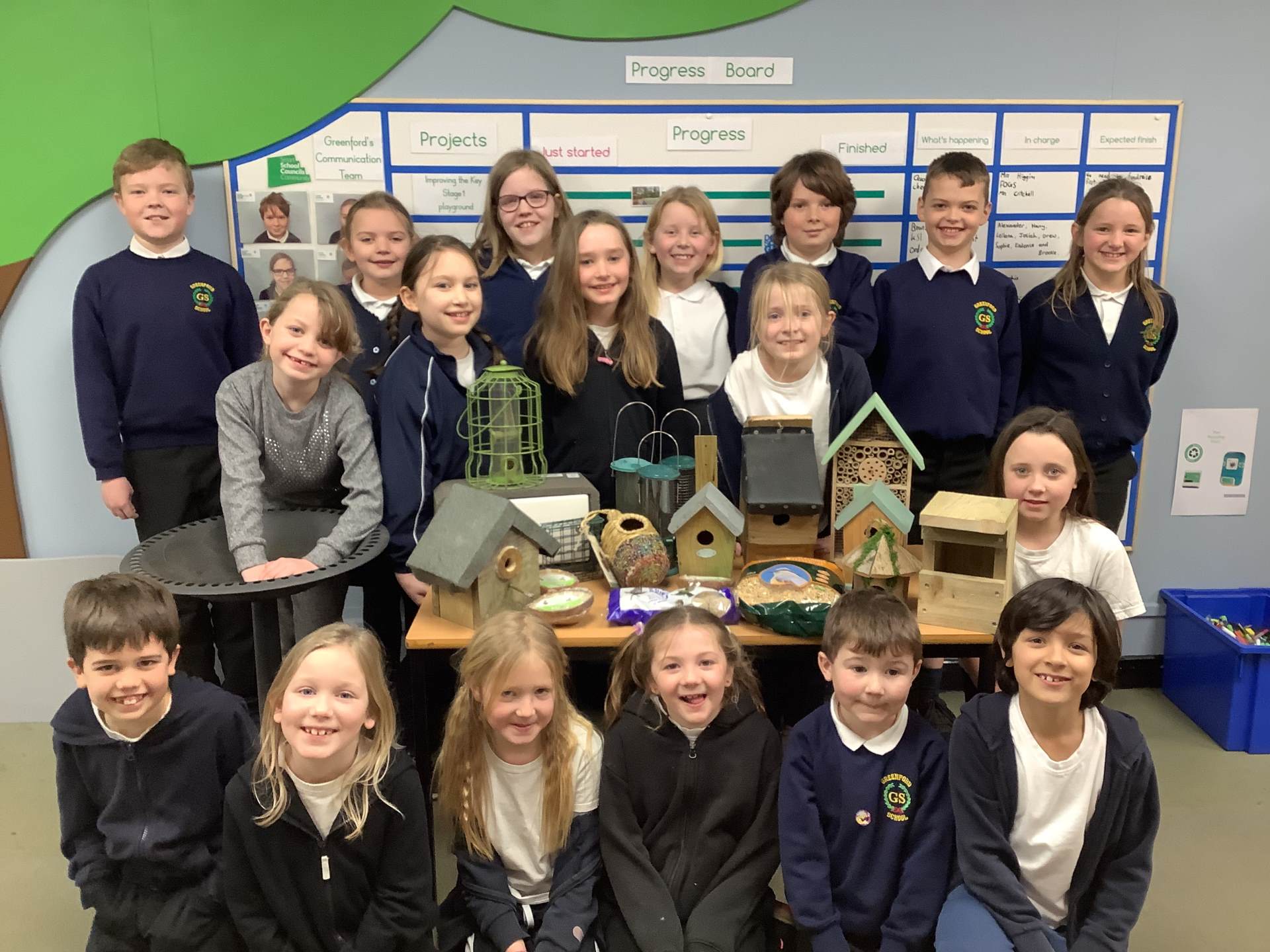 - Twelve new pairs of binoculars were purchased to enable us to 'bird watch' We voted to install a bird bath and to add extra nesting boxes and feeders around the school too. We then asked families and our local community for donations (see photos of donations below) We have already found nests with eggs in around the school!