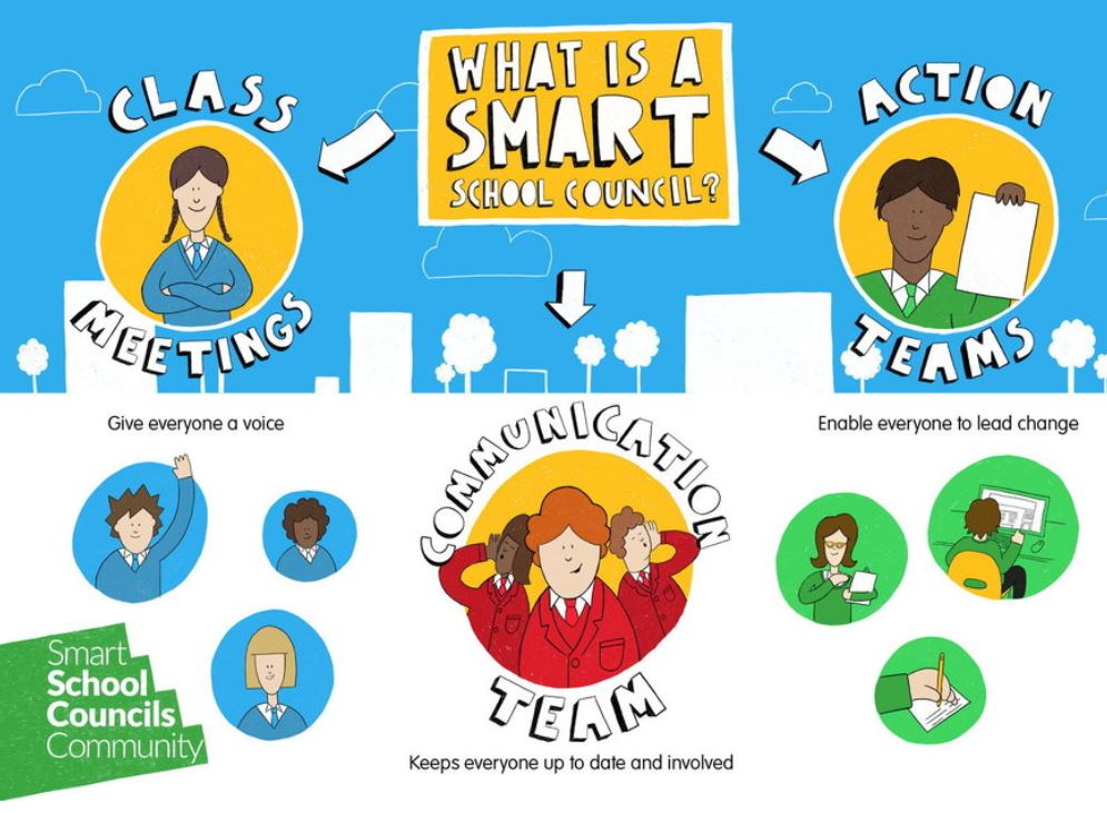 Article 12 of the United Nations Convention on the Rights of the Child (UNCRC) says that children and young people should have a say in decisions that affect their lives. Smart School Council provides a meaningful way in which our pupils can frequently voice their opinions and have their views taken into account in decisions which impact upon them. It allows pupils to be involved with a democratic community, teaches them about British Values and also brings life skills to the forefront of their school lives.